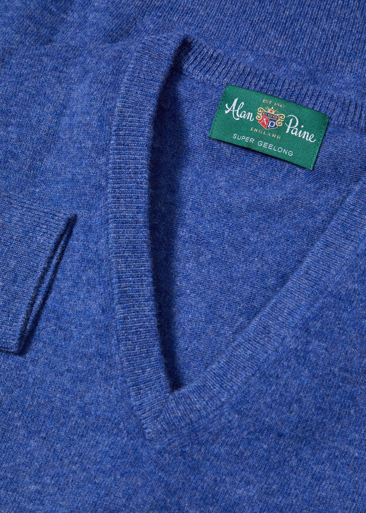 This jumper is crafted from a lighter weight pure Geelong lambswool. All Alan Paine knitwear is fully fashioned; each garment is knitted to shape on the knitting machine and not cut and sewn.