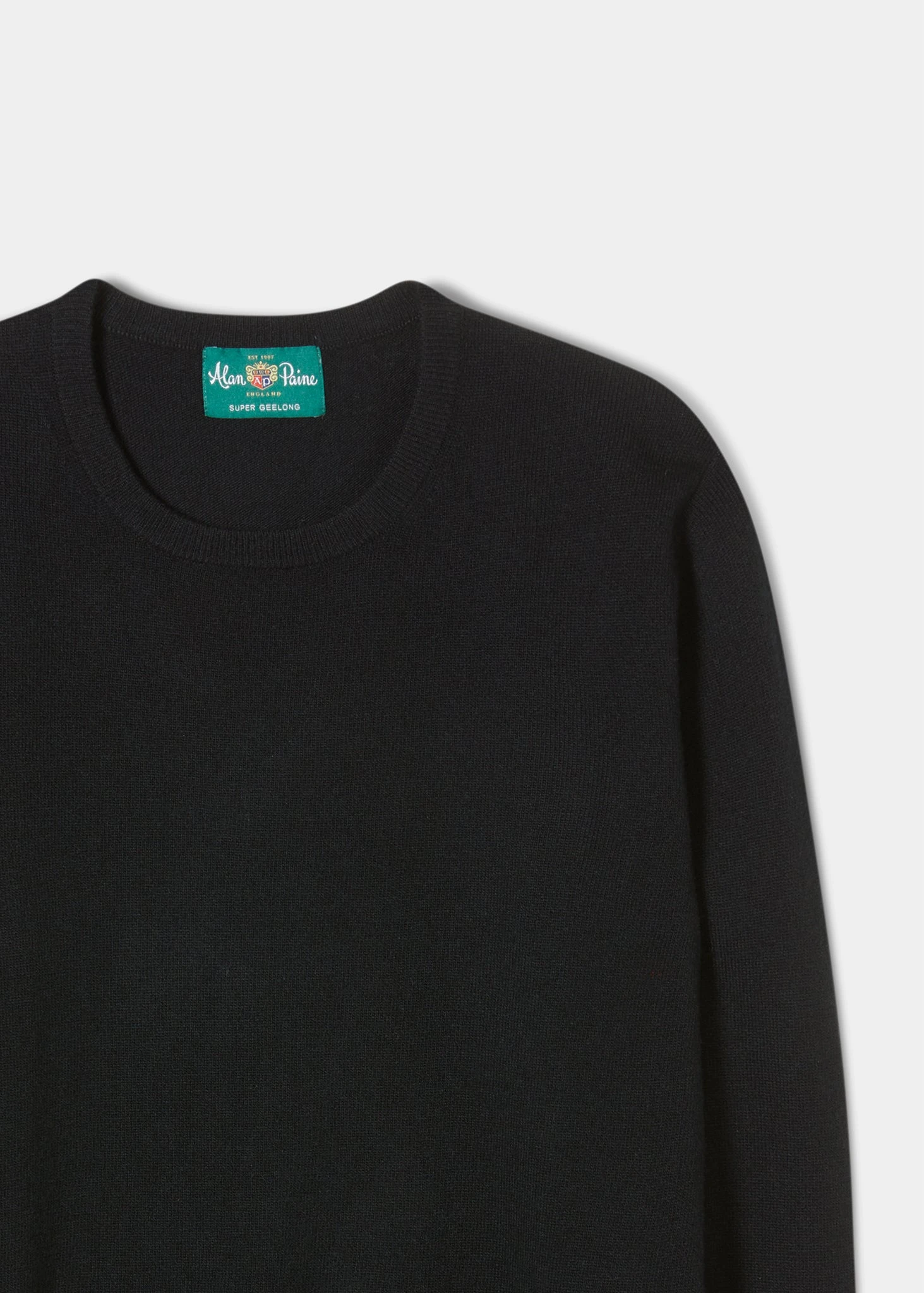 This jumper is crafted from a lighter weight pure geelong lambswool. All Alan Paine knitwear is fully fashioned; each garment is knitted to shape on the knitting machine and not cut and sewn.