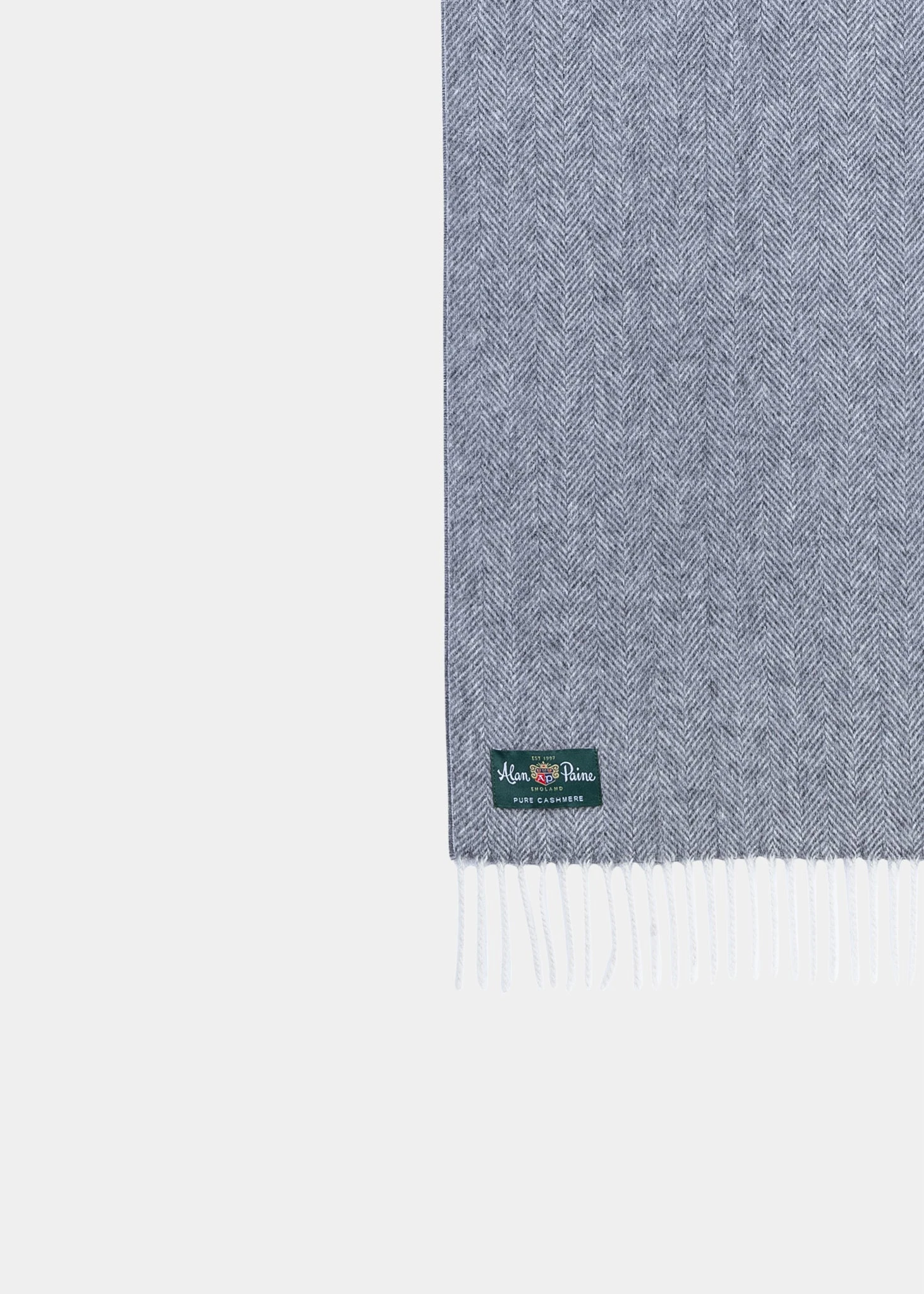 This luxury scarf from Alan Paine is great for wrapping up against the cold in style. A bold herringbone scarf crafted from pure cashmere.
