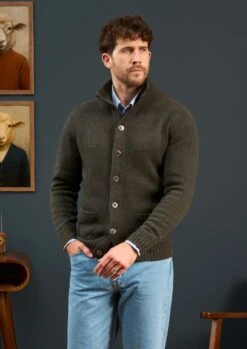 Landford Men’s Lambswool Buttoned Jumper In Seaweed – Regular Fit