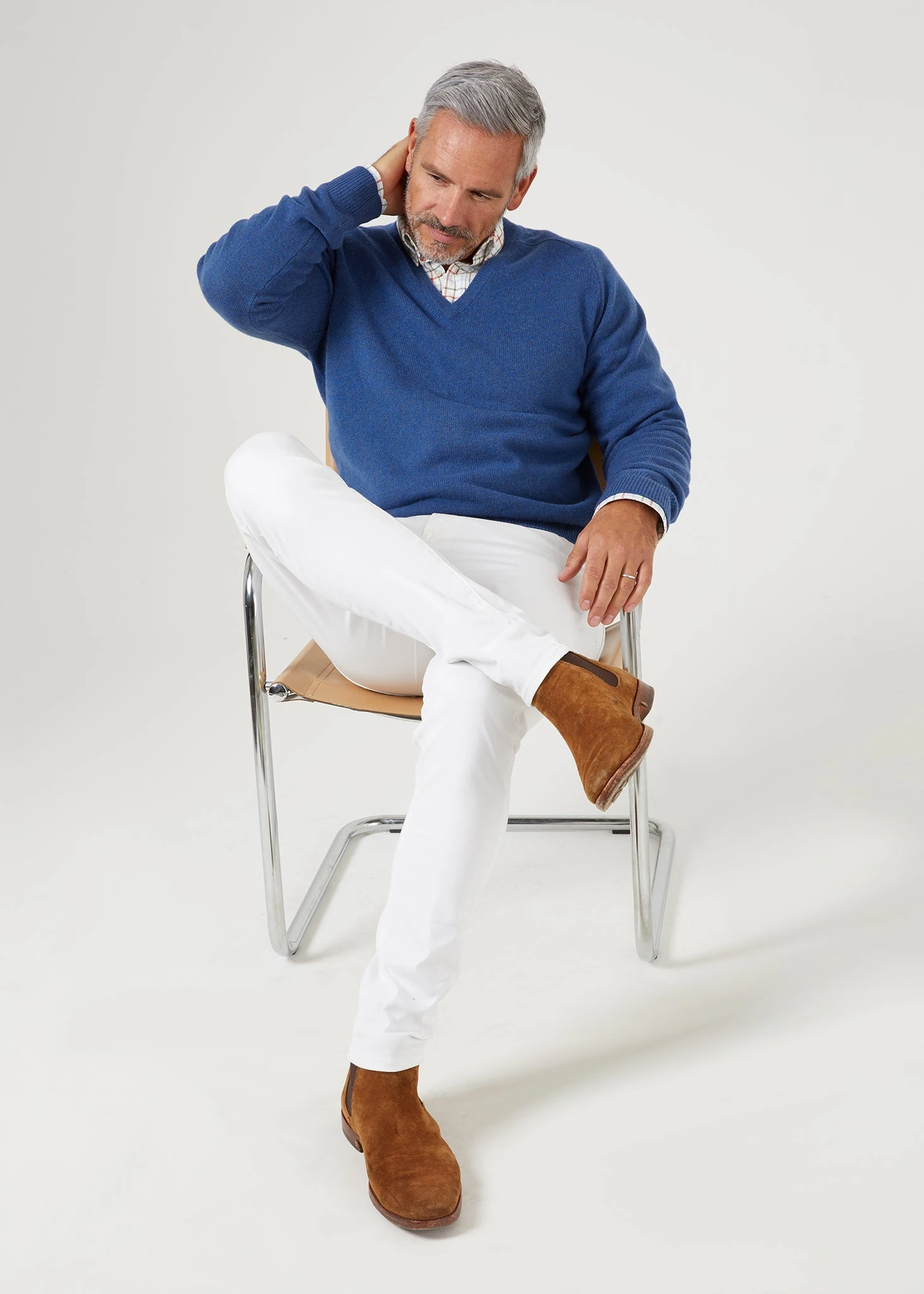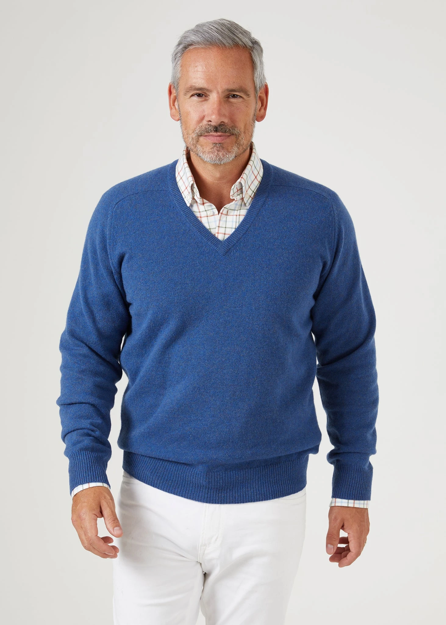 Once you’ve experienced the luxurious feeling of pulling on this Cashmere v-neck sweater you’ll understand why it’s the king of knitwear. Crafted using the finest first quality fibre from pure bred Cashmere goats. It has a full saddle shoulder shaping, generously cut across the waist, designed with a relaxed, more-traditional and comfortable fit.