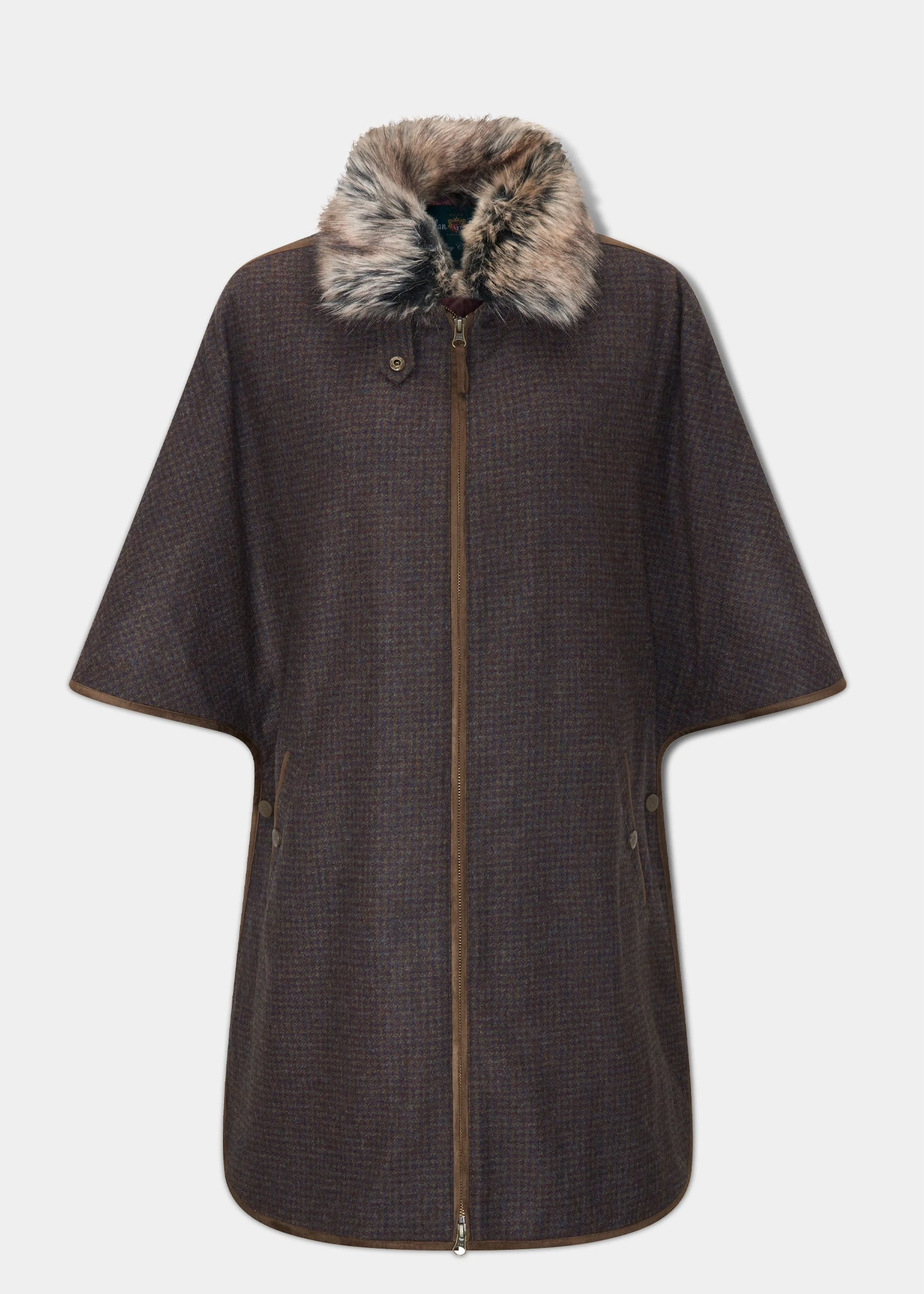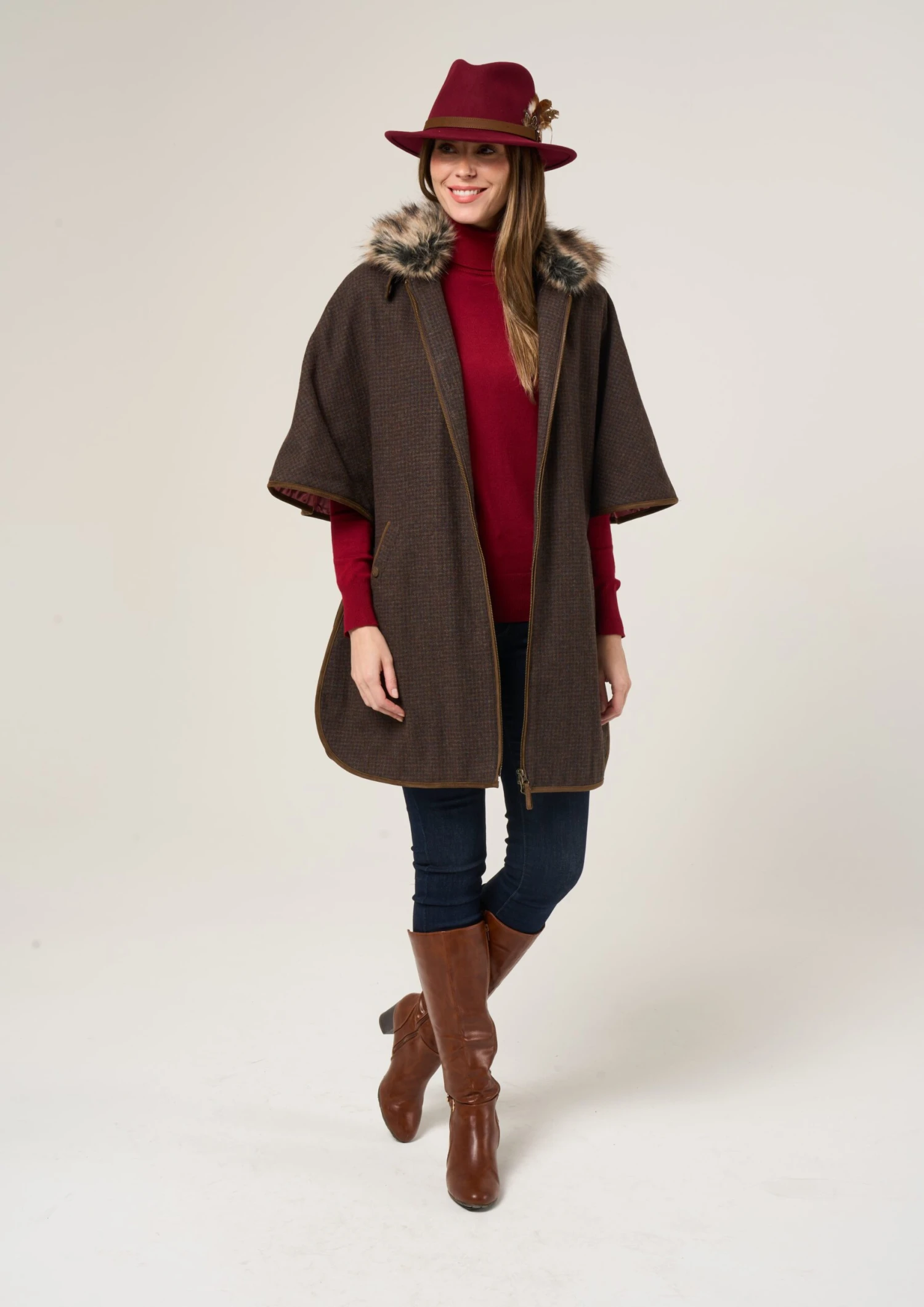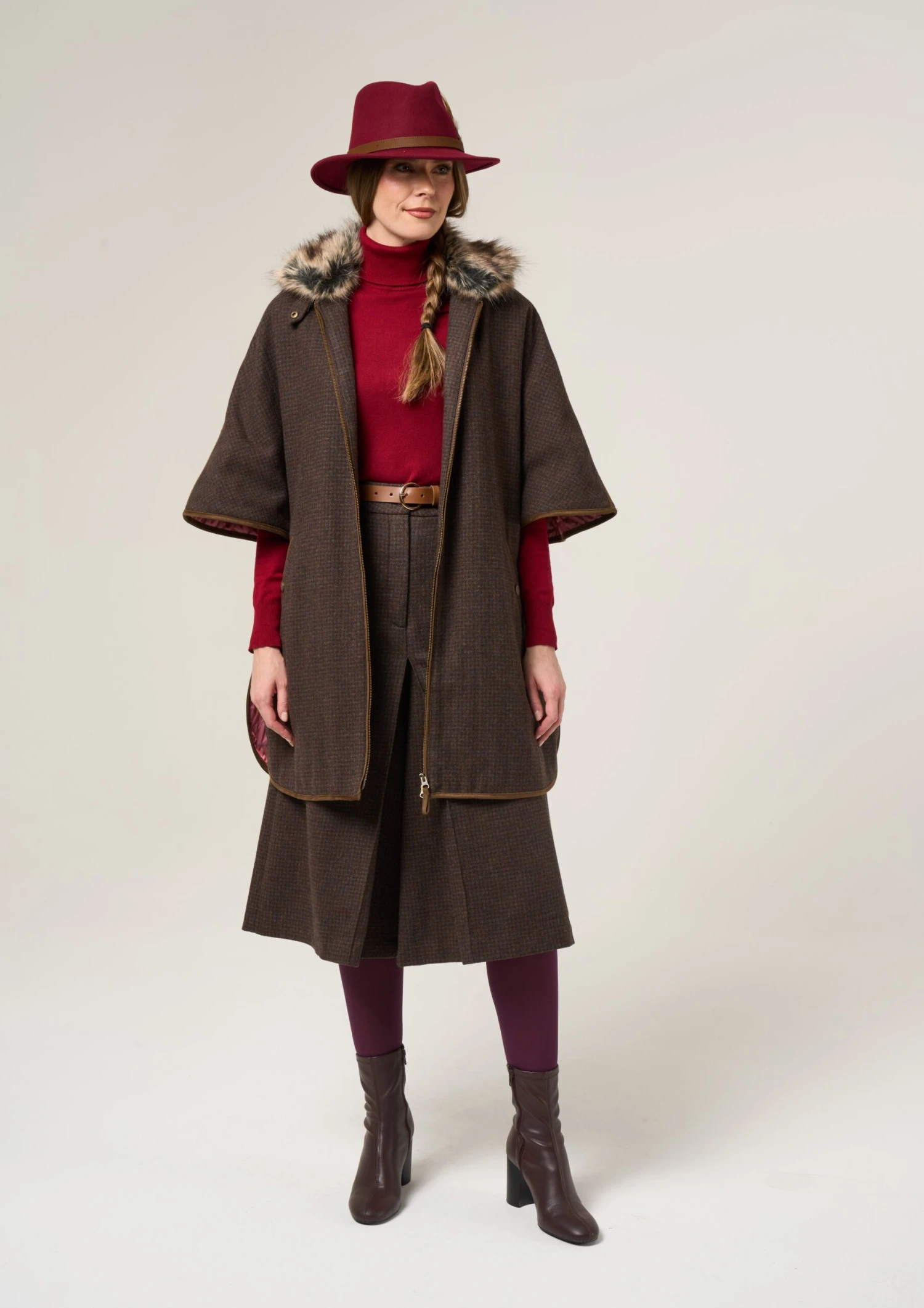 Elevate your style with the Surrey Ladies Tweed Cape In Bramble. Made with high-quality tweed, this cape offers a classic and sophisticated look. The deep bramble color adds a touch of elegance, while the cape design provides warmth and versatility. Perfect for any occasion, this cape is a must-have for any fashion-forward woman.