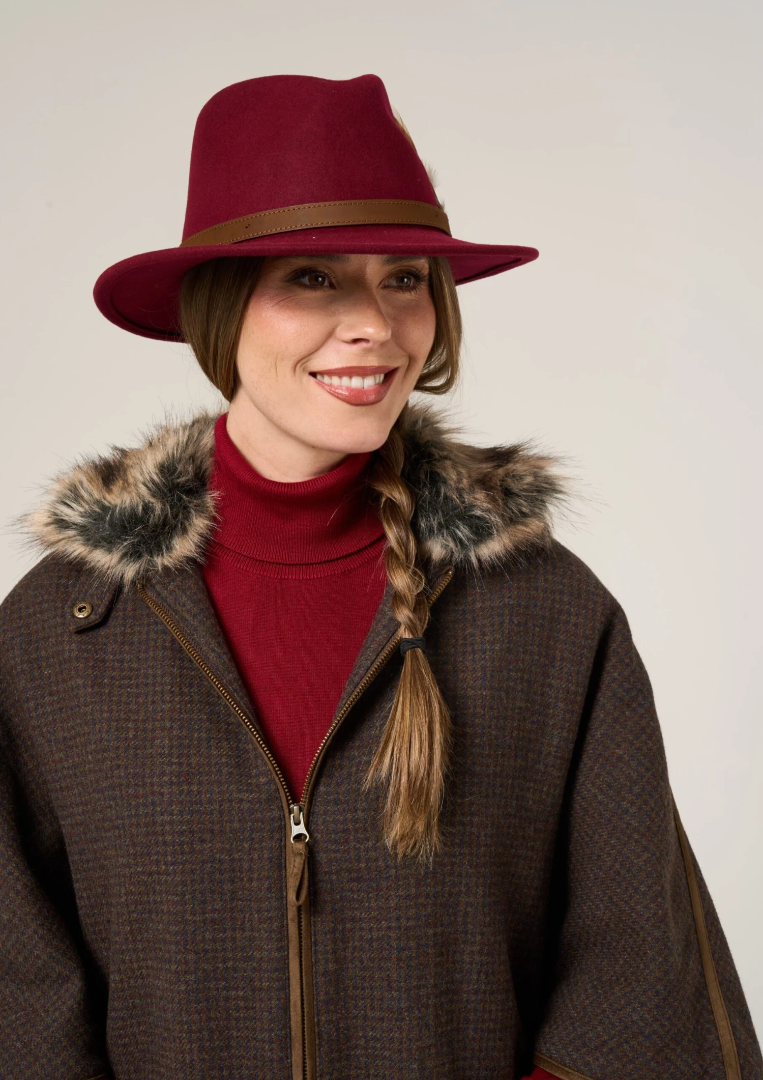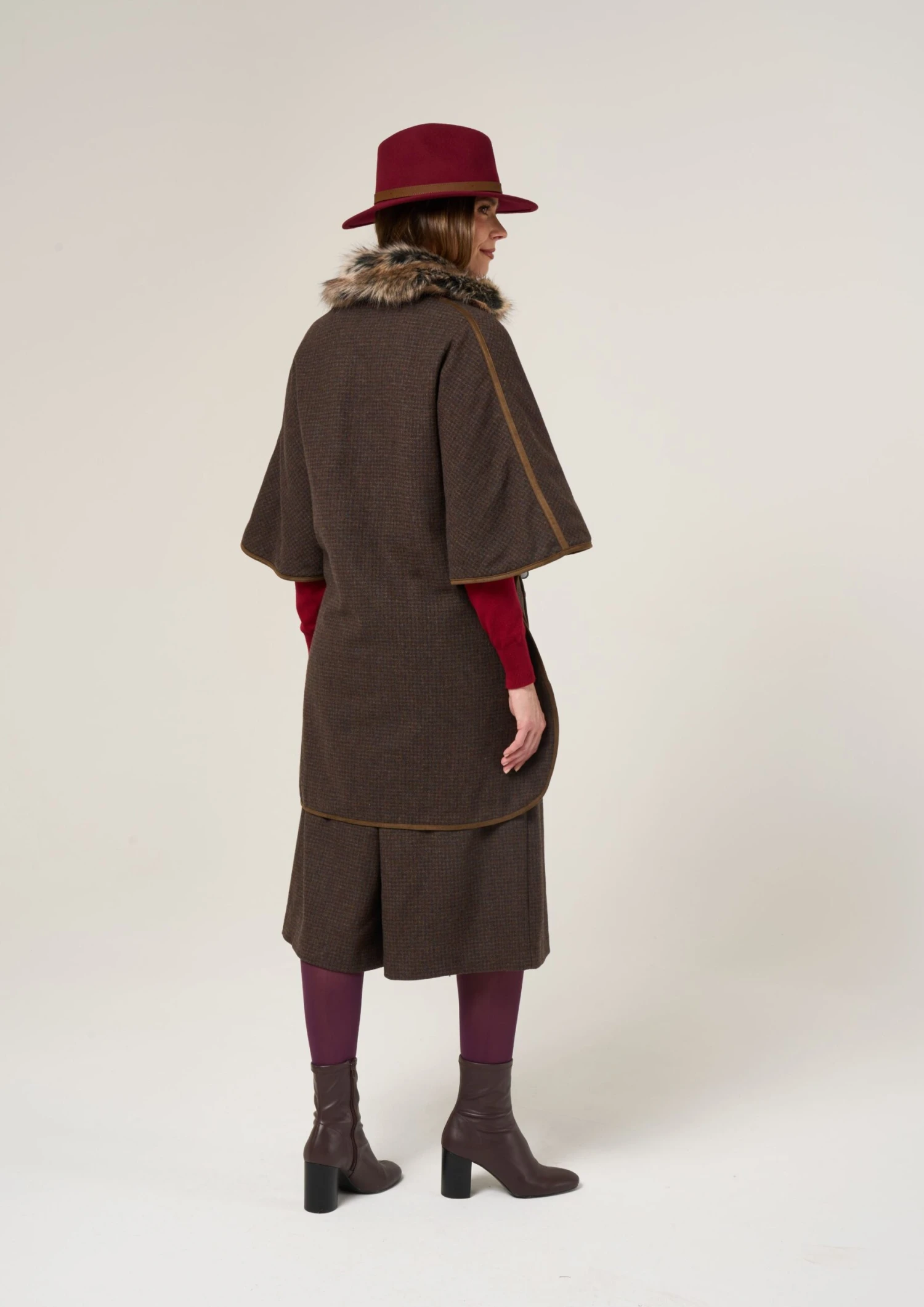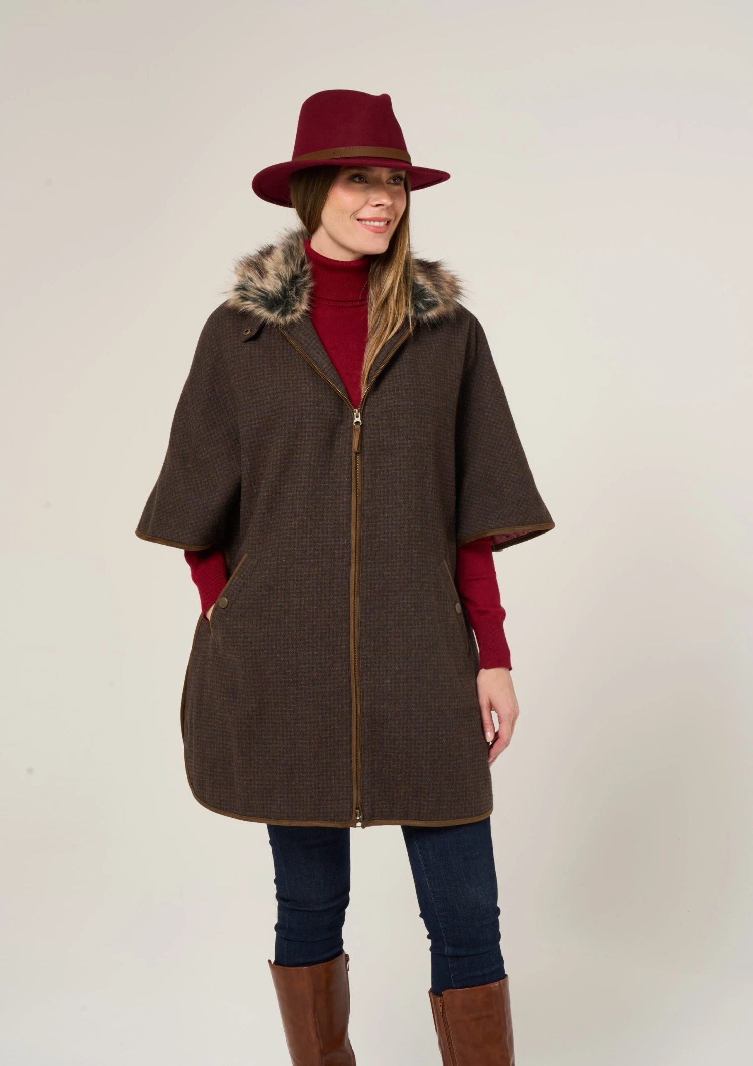 Elevate your style with the Surrey Ladies Tweed Cape In Bramble. Made with high-quality tweed, this cape offers a classic and sophisticated look. The deep bramble color adds a touch of elegance, while the cape design provides warmth and versatility. Perfect for any occasion, this cape is a must-have for any fashion-forward woman.
