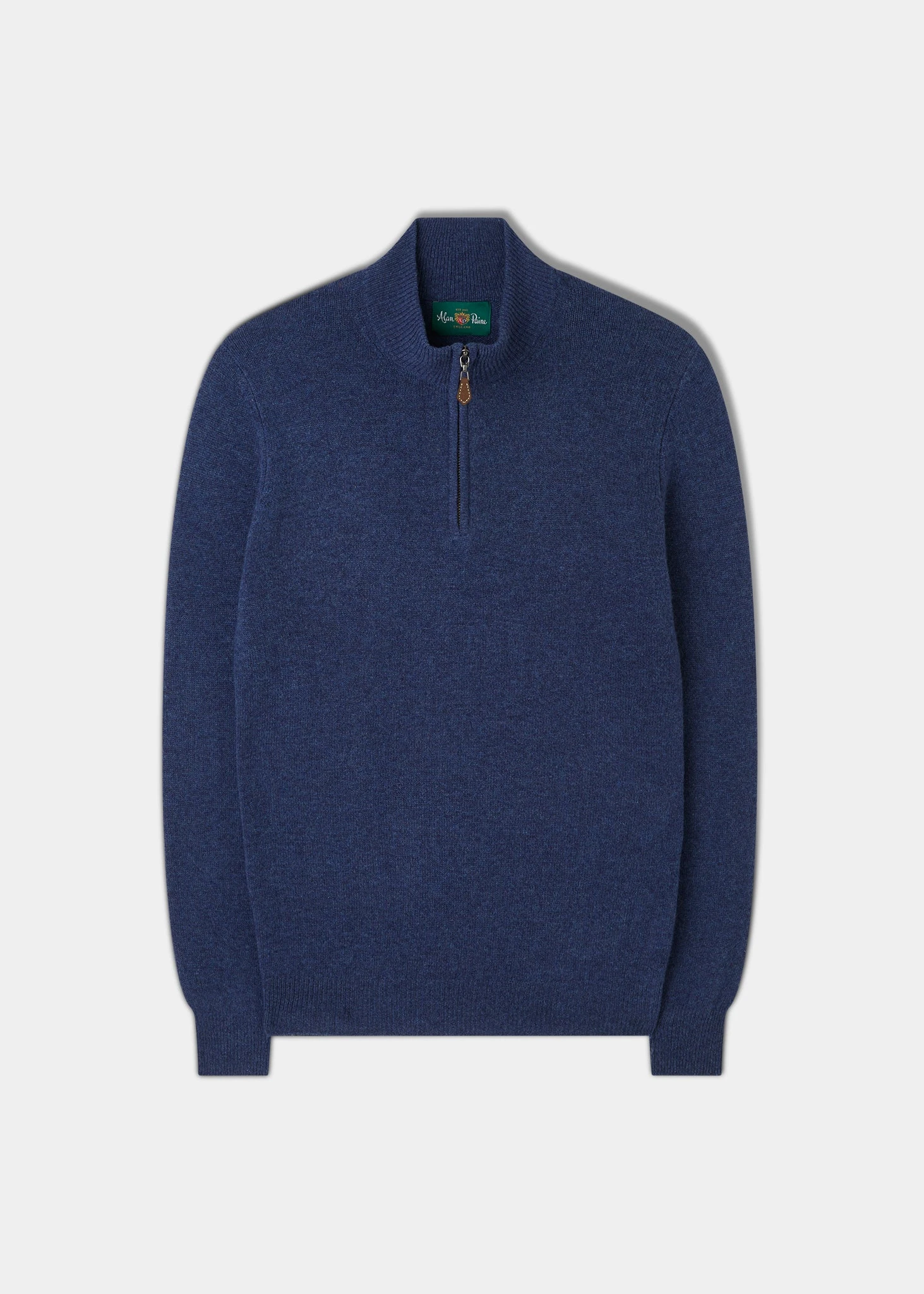 Effortlessly stylish, this quarter zip jumper in Rhapsody with leather zip pull will quickly become one of your wardrobe staples. Crafted from pure supersoft lambswool, it’s designed with a more contemporary regular fit, which means it’s slightly tapered across the waist and chest whilst still retaining plenty of room for comfort and ease of movement.